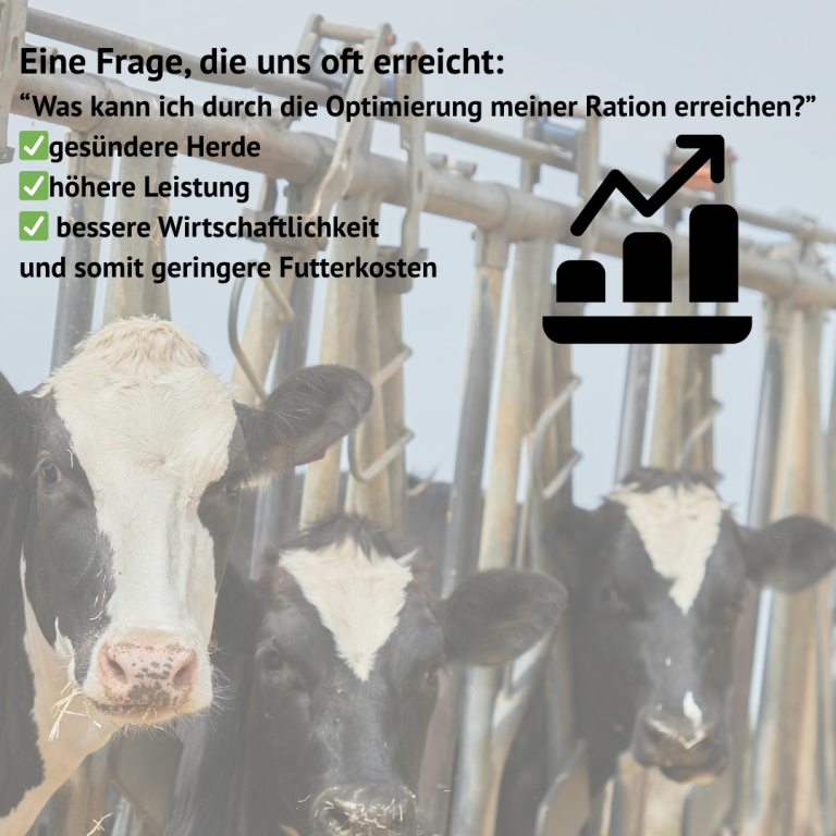 Mit einer optimierten Ration erreichst du mehr Leistung, gesündere Tiere und weniger Kosten. Das Beste: Du bekommst bei uns keine Theorie, sondern Lösungen, die in deinem Stall funktionieren.